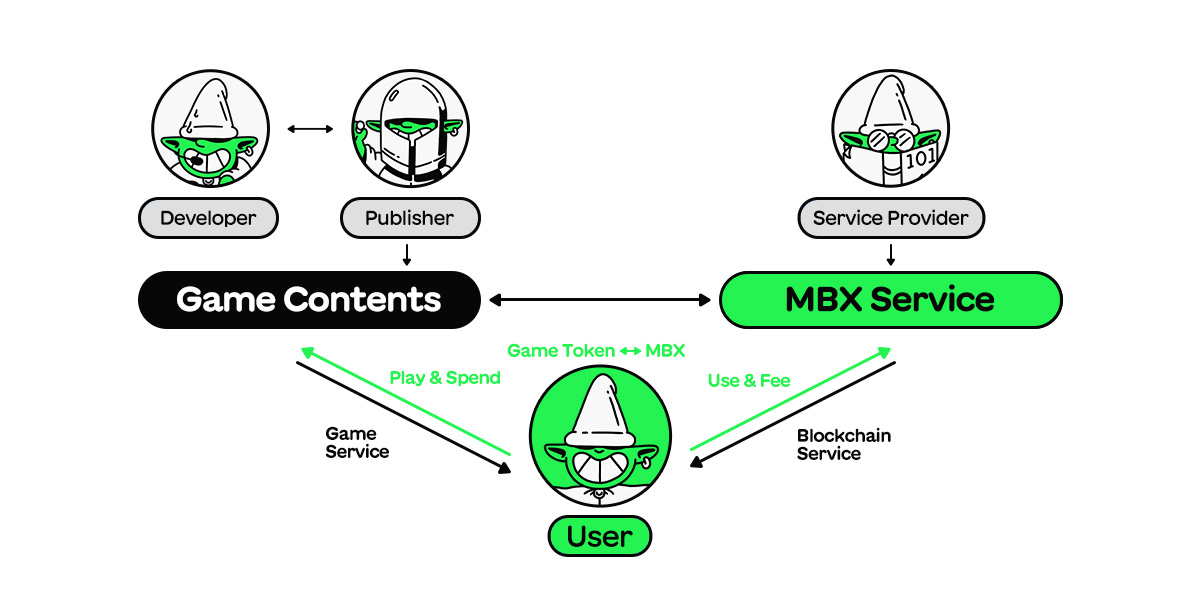 The MBX token ecosystem operates as a dynamic, multi-stakeholder environment involving publishers, game developers, service providers, and users. Within this interconnected structure centered on MBX tokens, the contributions of each participant generate incentives, fostering a sustainable and self-reinforcing ecosystem.