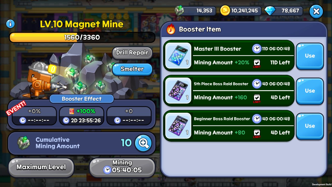 * Higher Mine levels allow you to **farm more Magnet Blocks** over time.