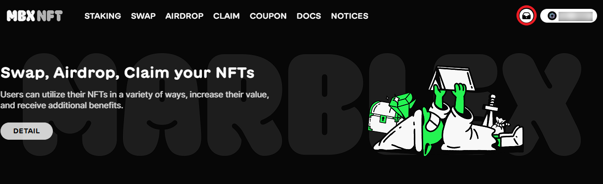 1\. From the main page of MBX NFT, check the upper right corner and click INVENTORY.
