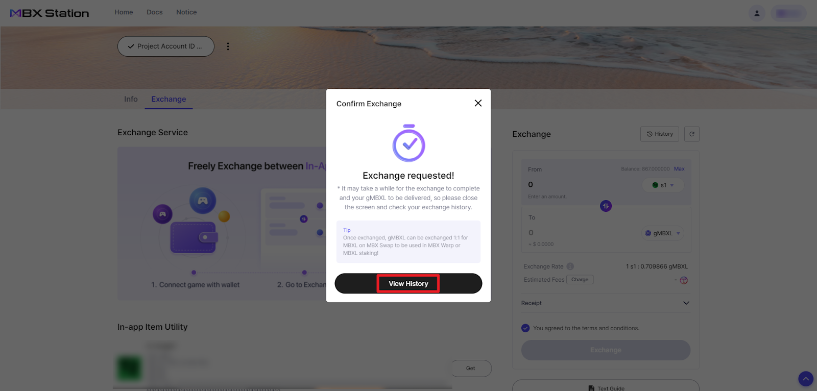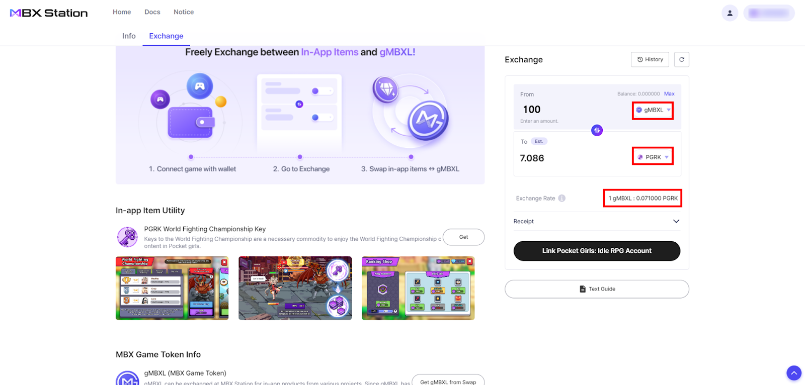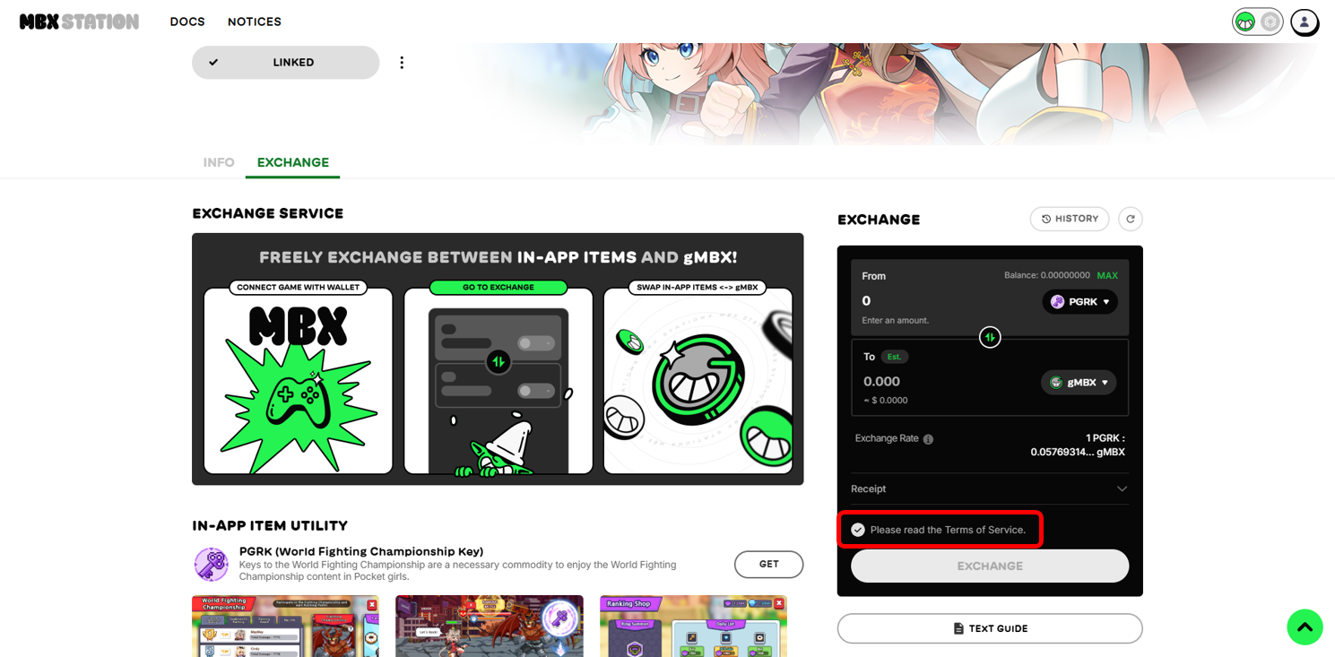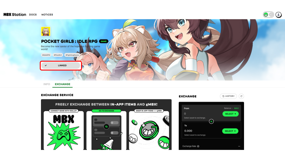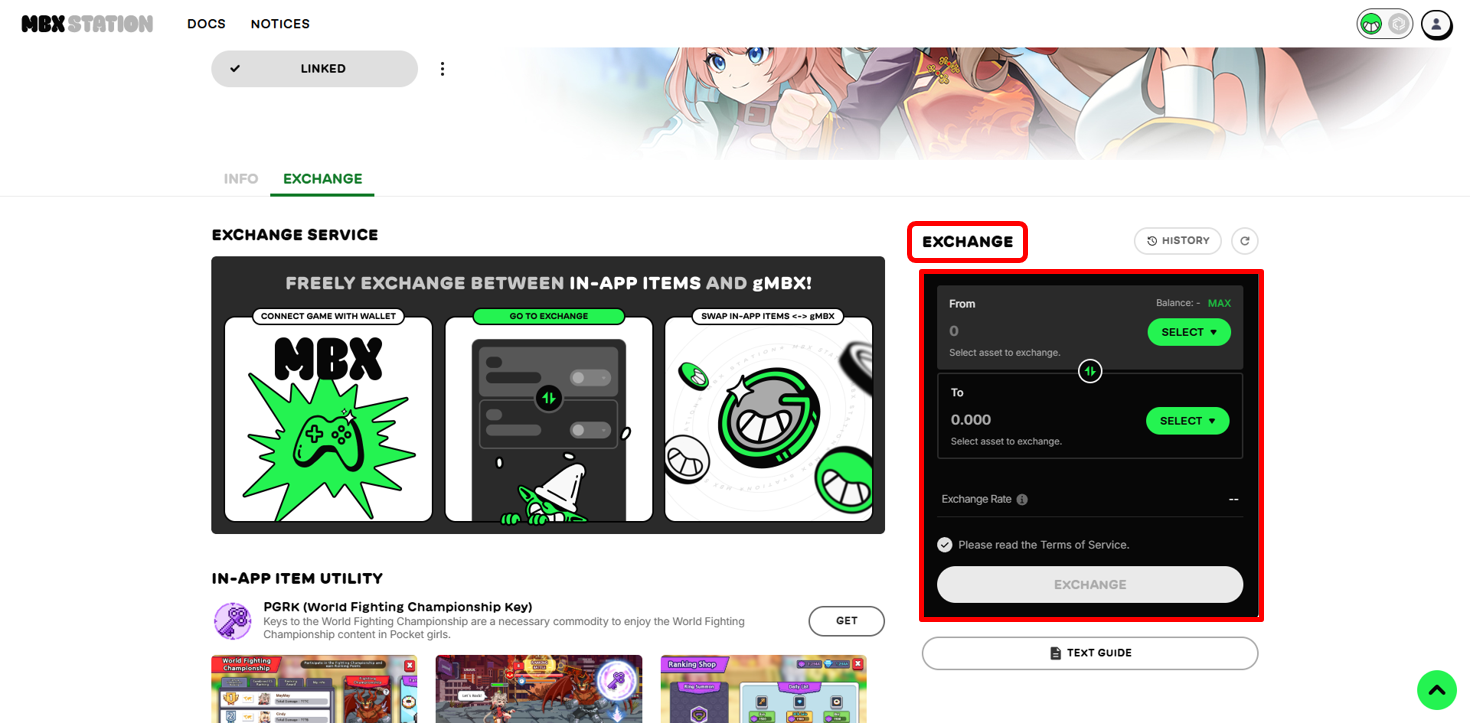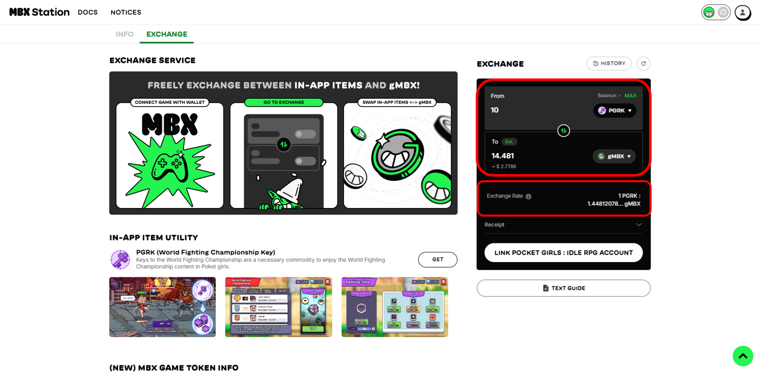 Now that we’re connected to the game, let’s take a look at how to exchange In-app Currency with gMBX.