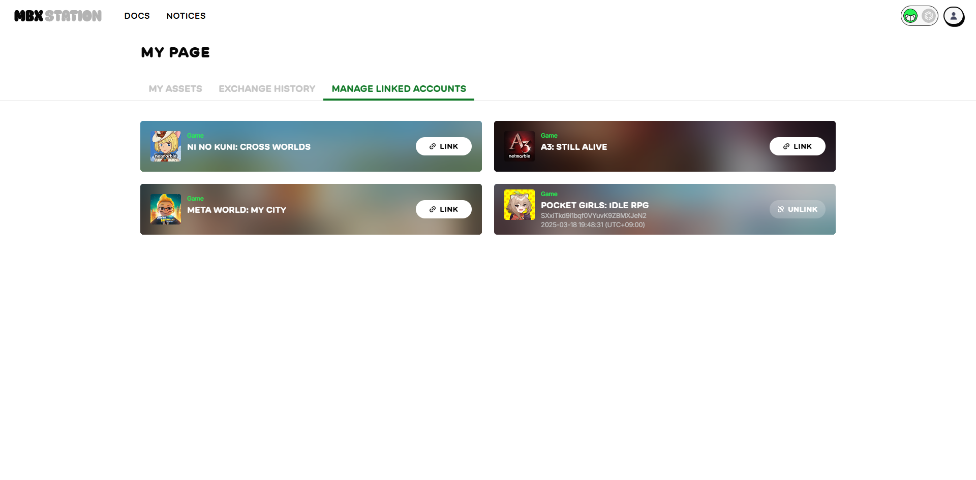 Here, users can directly link or unlink their wallet/account with games.